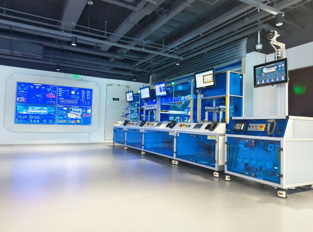配备了各种传感器、执行器和控制器,学生可以进行自动化控制实验,学习自动化技术的应用,例如PLC编程、传感器信号采集和反馈控制等。